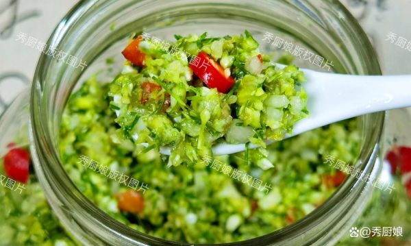 3. 腌制保存:準(zhǔn)備一個無水無油的玻璃罐,將攪拌好的韭菜花醬料裝入罐中,壓實(shí)。蓋上蓋子后放入冰箱保鮮,腌制12個小時以上即可食用。這道醬料的風(fēng)味會隨著腌制時間的延長而更加濃郁。