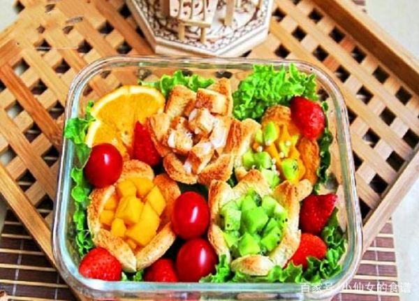 水果便當?shù)淖龇ㄓ泻芏啵銎饋硪彩直憬?,不同水果搭配起來還有不同的食療功效,可以幫助我們緩解感冒、咳嗽等癥狀,水果搭配各種食材做成便當營養(yǎng)又美味。