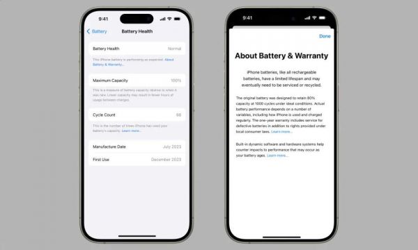 除了幫助用戶檢視電池健康狀態(tài)之外,蘋果也將充電循環(huán)計數(shù)視作電池壽命強度的標(biāo)準(zhǔn),比如iPhone 15系列,蘋果最早公開的電池壽命情況為「800次循環(huán)仍保持健康狀態(tài)」。