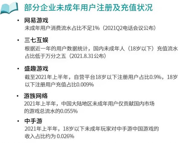 在“限游令”出臺后,包括騰訊、網(wǎng)易、完美世界、盛趣游戲、游族等游戲企業(yè)積極響應,共同構(gòu)建未成年人游戲防沉迷系統(tǒng),對未成年人的游戲時間進行管控取得一定成效。