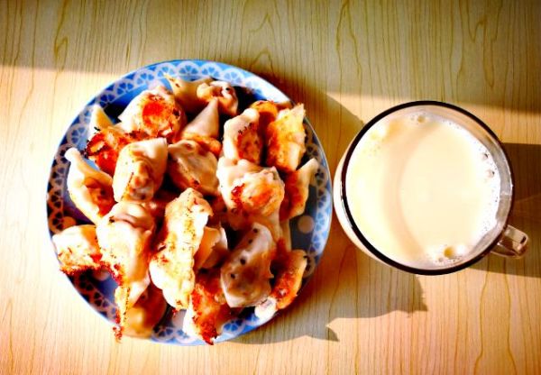早晨,我通常會(huì)選擇用平底鍋加熱超市購買的速凍餃子,制作成鍋貼。這種烹飪方式似乎更能完美地鎖住餃子內(nèi)部的香氣。鎖住香氣的鍋貼搭配豆?jié){,是冬日早晨的溫暖享受,做好一盤鍋貼后,蘸上少許醋品嘗,既解膩又增添了美味。這樣的早餐搭配,再配上一杯豆?jié){,簡直是冬日里的小確幸。