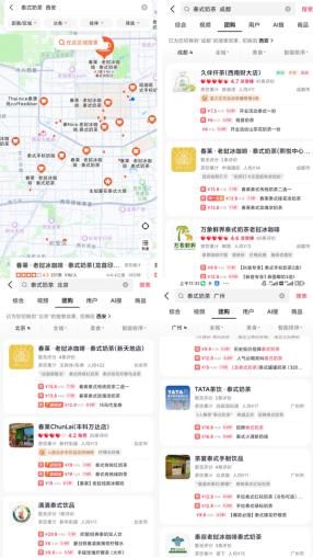 在大眾點評上搜索“西安,泰式奶茶”,結(jié)果顯示西安各地涌現(xiàn)出一批泰式茶飲專賣店。店名多以“XXX老撾冰咖·泰式奶茶”的格式,如“泰Nice·老撾冰咖啡·泰式奶茶”、“春萊·老撾冰咖啡·泰式奶茶”等。價格方面,人均消費在14-16元,如“春萊”的價格為15-17元。