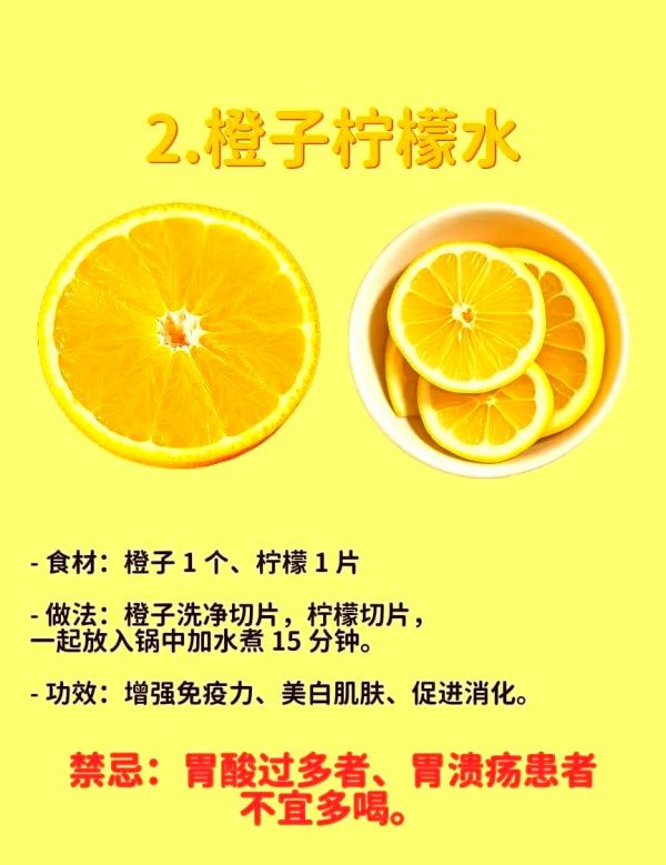 制作步驟:將橙子徹底清洗后切片,與檸檬片一同置入鍋中,加入適量清水,煮沸后轉(zhuǎn)小火慢煮15分鐘。