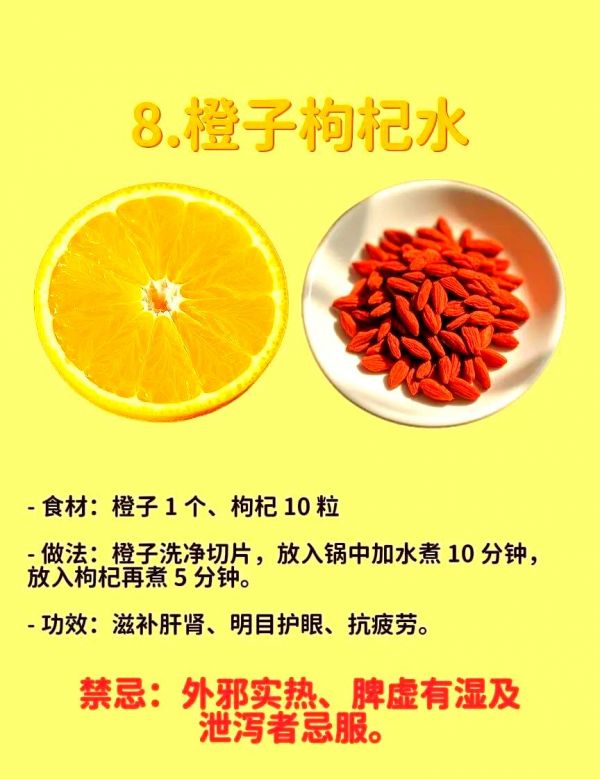 制作方法:將橙子清洗干凈后切片,放入鍋中,加入適量的清水,煮沸后轉(zhuǎn)小火慢煮10分鐘,隨后再加入枸杞,繼續(xù)煮5分鐘即可。