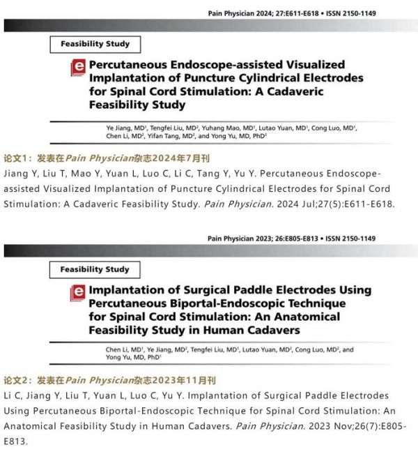圖3:我們團隊在美國Pain Physician雜志發(fā)表的2篇文章,介紹我們創(chuàng)新技術(shù),微創(chuàng)植入電極