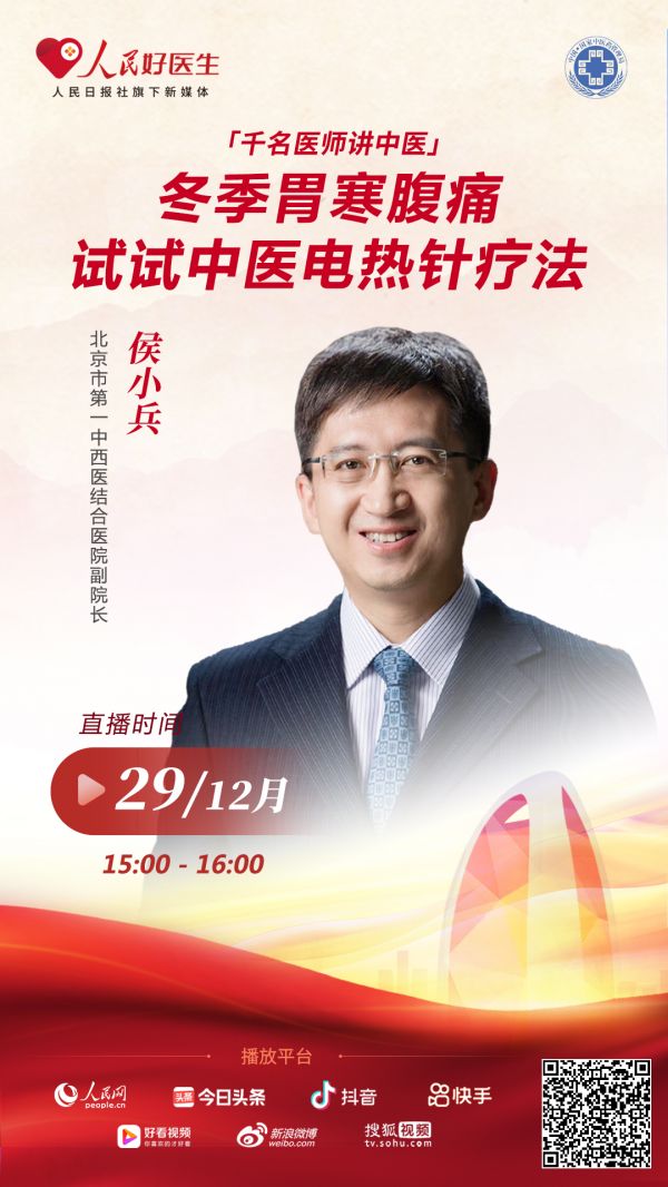 12月29日15:00,人民日報社旗下新媒體平臺“人民好醫(yī)生”與國家中醫(yī)藥管理局辦公室聯(lián)合推出的“千名醫(yī)師講中醫(yī)”系列直播將邀請北京市第一中西醫(yī)結合醫(yī)院副院長侯小兵做客直播間,為大家詳細講解電熱針在治療胃炎等疾病方面的應用。