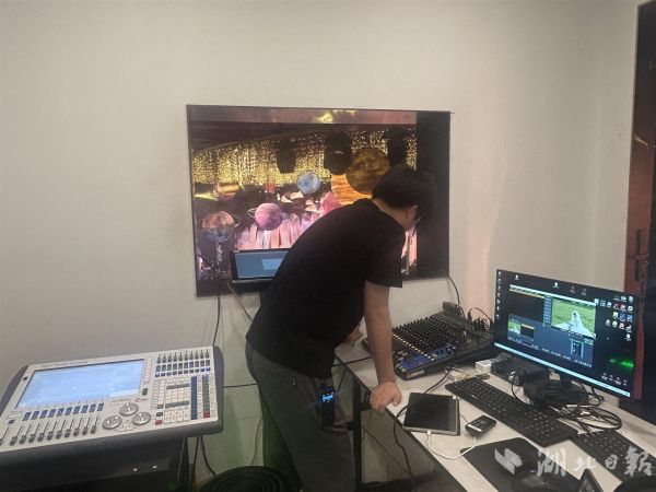 今年24歲的小伙子夏金煒是玫瑰星云廳里的燈光音響師。婚禮儀式開場(chǎng)前,他已經(jīng)仔細(xì)巡檢了每一臺(tái)設(shè)備。