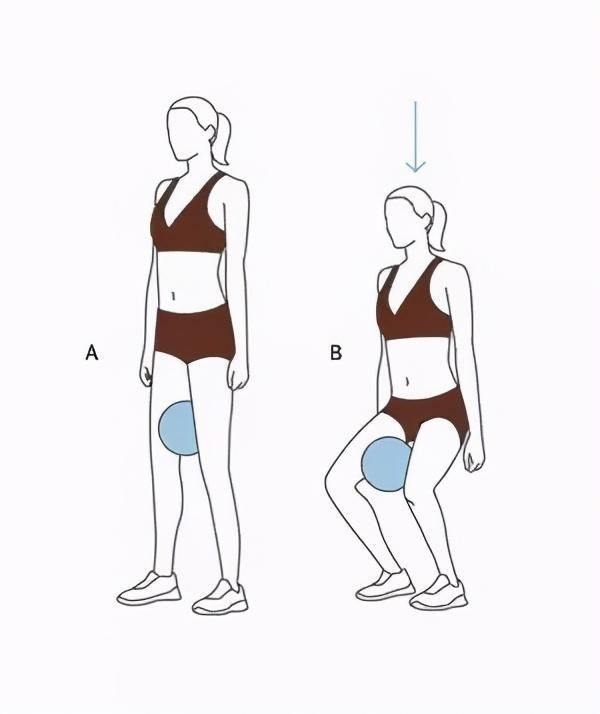 用大腿內(nèi)側(cè)夾緊皮球,保持球的穩(wěn)定,然后使用2個(gè)時(shí)間單位緩慢下蹲,保持一個(gè)時(shí)間單位,再用2個(gè)時(shí)間單位還原。