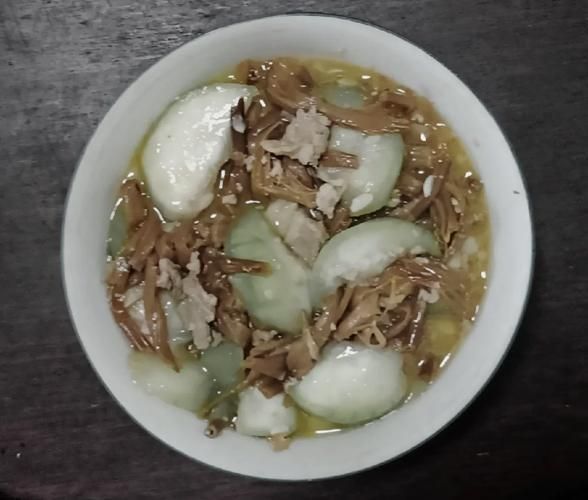 將絲瓜放入鍋中煮煮幾分鐘,讓絲瓜的清香融入湯中。