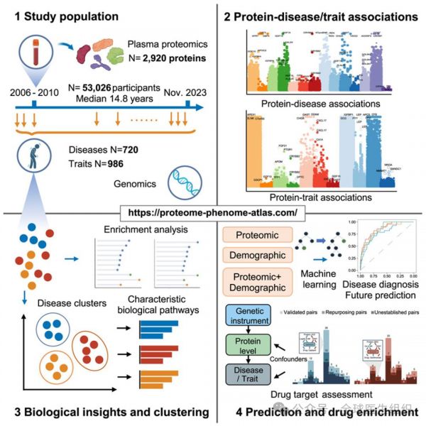最新研究報(bào)告了5.3萬多名成人的健康與疾病的血漿蛋白質(zhì)組圖譜,構(gòu)建了覆蓋1706種人類疾病和特征的全面蛋白質(zhì)組圖譜。