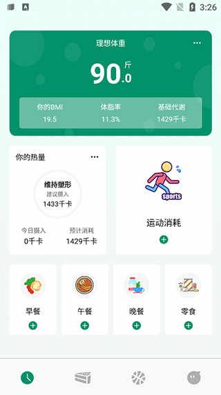 2、首頁,用戶可以設(shè)置自己的理想體重;