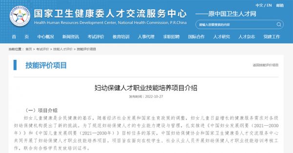 國家衛(wèi)生健康委人才交流服務中心:婦幼保健人才(婦幼保健員)職業(yè)技能培養(yǎng)項目介紹及報考說明