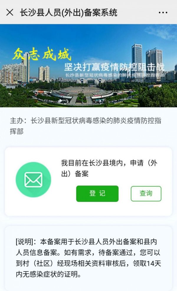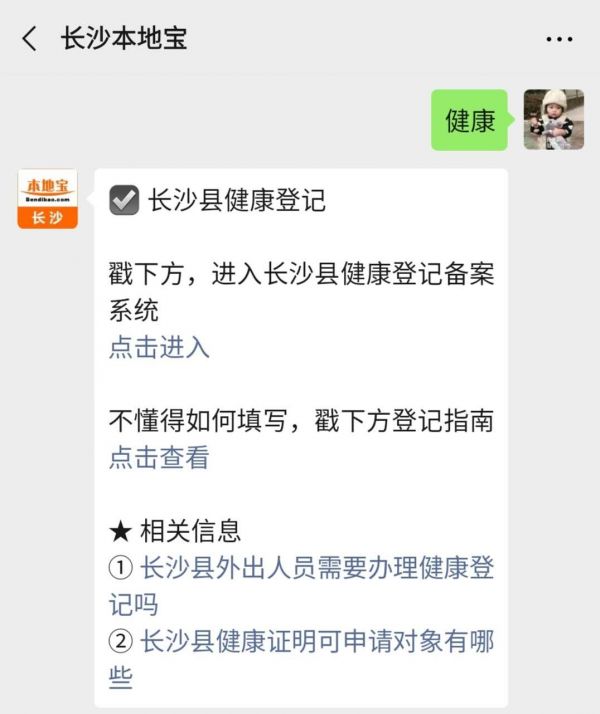 重要提醒:進(jìn)入我們的微信公眾號“長沙本地寶”(微信ID:cshabdb),回復(fù):健康,就可以獲取長沙縣健康登記備案系統(tǒng)入口,辦理健康證明,方便外出和返工就業(yè)等。