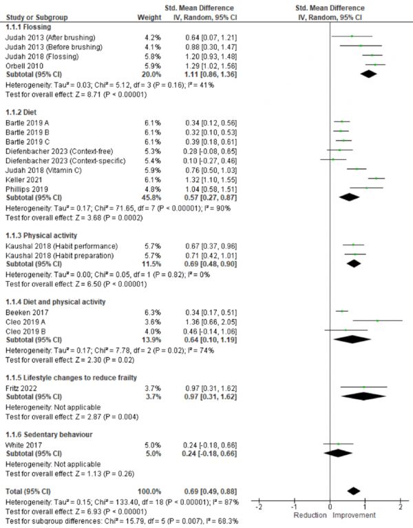干預(yù)前后習(xí)慣評(píng)分變化的薈萃分析結(jié)果