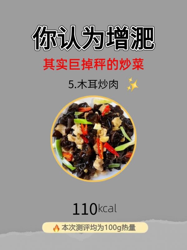 110kcal/100g的木耳炒肉,有著醇厚鮮美的滋味。木耳的軟糯與肉的香醇融合,口感豐富。木耳富含膳食纖維,能吸附腸道垃圾;肉則提供必要的蛋白質(zhì)。這道菜在減脂期,既能滿足我們對(duì)肉香的渴望,又能借助木耳的特性,幫助身體清理“負(fù)擔(dān)”,讓減脂之路走得更順暢 。一盤木耳炒肉,承載著醇厚美味,也承載著減脂的希望。
