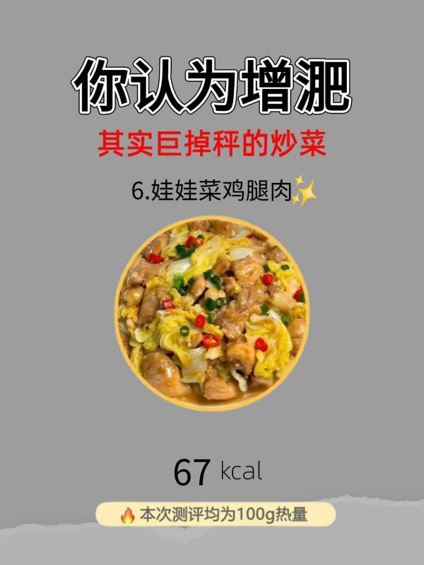 67kcal/100g的娃娃菜雞腿肉,鮮香下飯。娃娃菜的清甜與雞腿肉的鮮嫩搭配,好吃又下飯。娃娃菜熱量低、營(yíng)養(yǎng)豐富;雞腿肉去皮后脂肪含量低,蛋白質(zhì)豐富。這道菜讓我們?cè)跍p脂期也能享受“下飯”的快樂(lè),不再為吃飯發(fā)愁,美味與掉秤兩不誤 。吃著娃娃菜雞腿肉,每一口都是對(duì)減脂期味蕾的溫柔滿足,掉秤也變得自然而然。