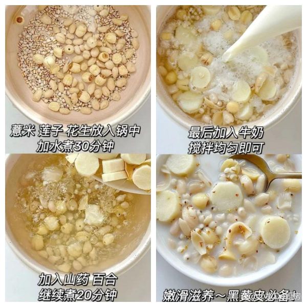 準(zhǔn)備材料:山藥、花生、冰糖、百合、薏米、蓮子