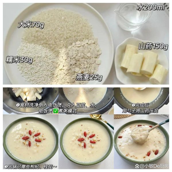準(zhǔn)備材料:大米、糯米、豆?jié){、山藥、燕麥、冰糖適量