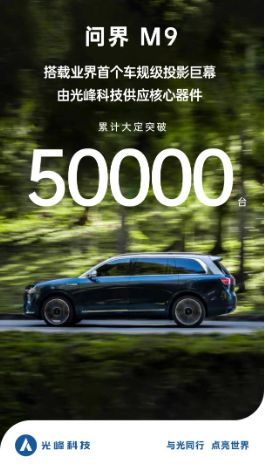 值得一提的是,光峰科技車載光學(xué)面向激光大燈、車載顯示、AR-HUD提供多種解決方案,并在2023年12月,迎來首個(gè)定點(diǎn)車型問界 M9 正式落地。問界 M9 搭載由光峰科技為其提供的業(yè)界首款車規(guī)級(jí)巨幕投影解決方案,能夠?yàn)橛脩魩砬逦?、?xì)膩、護(hù)眼的畫面體驗(yàn)。據(jù)媒體消息,截至2月底,問界M9上市62天累計(jì)大定已突破50000臺(tái)。此外在車燈上,公司亦有與國(guó)際知名車企的定點(diǎn)合作項(xiàng)目正在研發(fā)推進(jìn)中。