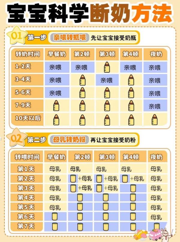 第一步:減少夜奶:從停止夜間喂養(yǎng)開始,逐漸過渡到停止日間和睡前喂養(yǎng)。這樣可以幫助寶寶逐漸適應(yīng)奶粉。