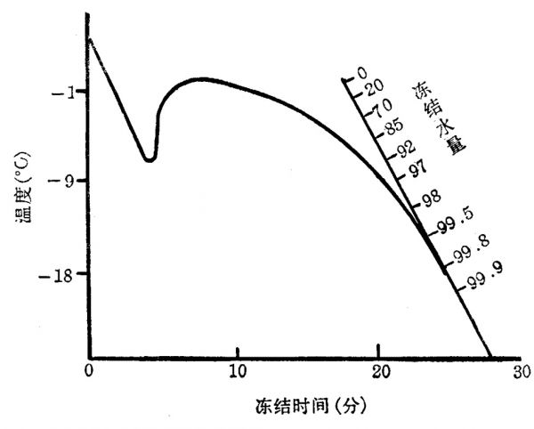 圖為牛肉薄片在不同溫度和不同時(shí)間內(nèi)測(cè)得的牛肉中凍結(jié)水量的曲線。