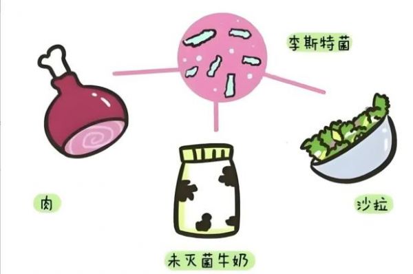 高危食物:生奶源及其制品、冰激凌、生食的水果蔬菜、肉及肉制品、冷的熟食生食類、煙熏類海產(chǎn)等。