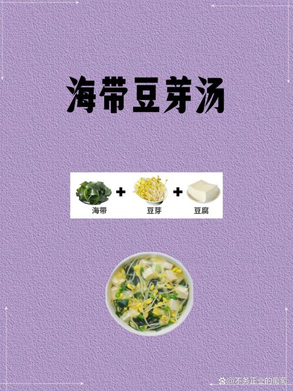 海帶豆芽湯:準(zhǔn)備食材海帶,豆芽,豆腐。將海帶和豆芽分別洗凈,切成適當(dāng)大小的塊狀。將豆腐切成小塊備用,將切好的海帶和豆芽放入鍋中,加入適量的清水,用大火煮沸后轉(zhuǎn)小火慢慢燉煮。燉煮的過(guò)程中,我們可以加入適量的鹽和胡椒粉調(diào)味。當(dāng)海帶和豆芽燉煮至軟爛時(shí),我們?cè)偌尤肭泻玫亩垢瘔K,繼續(xù)燉煮一段時(shí)間,直到豆腐也完全煮熟。最后,我們?cè)偌尤脒m量的雞精和香菜葉調(diào)味,這道美味的海帶豆芽湯就做好了。