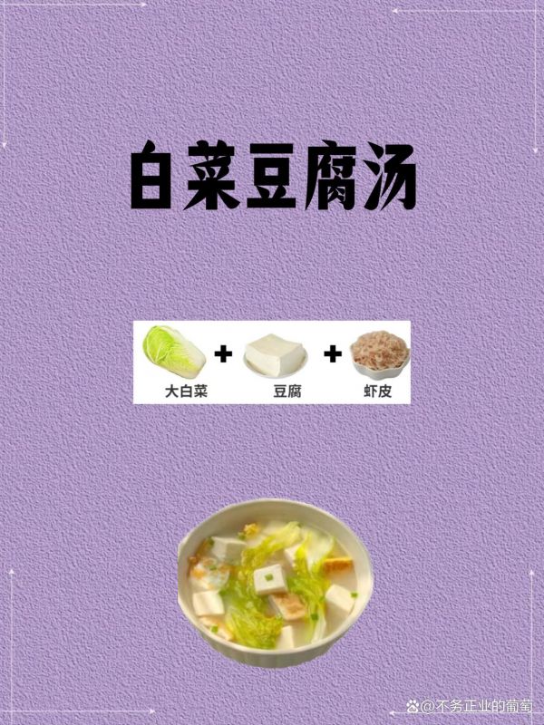 白菜豆腐湯:準(zhǔn)備食材白菜,豆腐,蝦皮。將白菜洗凈切成小段,豆腐切小塊,蝦皮洗凈備用。在鍋中加入適量的清水,將白菜段和蝦皮放入鍋中,用大火煮沸。煮沸后,將豆腐塊加入鍋中,繼續(xù)煮5分鐘。 煮至食材斷生后,加入適量的鹽和雞精調(diào)味,即可出鍋。這道白菜豆腐湯不僅口感清淡,而且營(yíng)養(yǎng)豐富。總之,這些減脂刮油湯都是非常適合冬季食用的。它們不僅可以為你們帶來(lái)美味,還可以幫助你們保持健康的身體。所以,趕緊試試這些湯吧!#秋冬減肥逆襲指南#