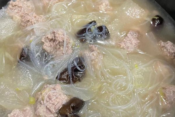 將羊肉餡與調(diào)料攪拌均勻后制成丸子,將冬瓜片和調(diào)料放入鍋中煮開,然后將丸子放入鍋中煮熟,最后加入粉絲和調(diào)味料,出鍋前撒上香菜和香油,即可享用。這道湯口感鮮美,丸子滑嫩,冬瓜鮮甜,營(yíng)養(yǎng)豐富。