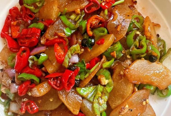 辣炒冬瓜是一道下飯好滋味,冬瓜切成薄片,蒜、辣椒、洋蔥切碎,翻炒至熟透,加入適量的豆豉翻炒出香味后,放回冬瓜,加入調(diào)料翻炒至入味即可。這道菜肴非常適合搭配米飯或面條食用,味道辣香可口。