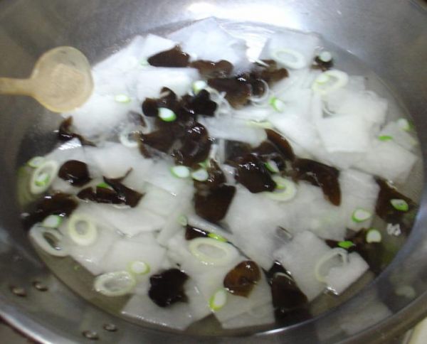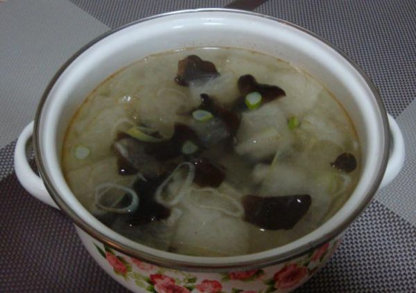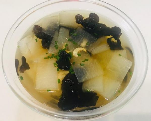 木耳冬瓜湯,不加一滴油,口味非常清淡,但味道卻很鮮美,比雞湯、魚湯還要鮮,不含一點(diǎn)多余的脂肪。如果實(shí)在覺得太清淡,可以淋一些香油攪拌均勻,味道也非常不錯(cuò)。如果想減肥,還是不要加多余的油脂了。雖然沒有油,但味道卻很好,我已經(jīng)連續(xù)喝了半個(gè)月了,感覺身輕體健的,非常不錯(cuò)。