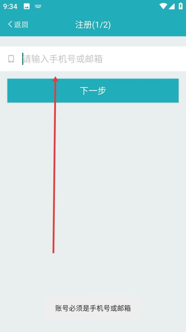 3、進(jìn)入注冊界面,在指定輸入框準(zhǔn)確輸入手機(jī)號或郵箱,完成后點(diǎn)擊下一步,推進(jìn)注冊流程。