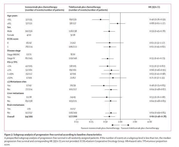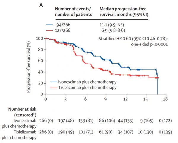 研究結(jié)果顯示,依沃西單抗聯(lián)合化療顯著優(yōu)于替雷利珠單抗聯(lián)合化療。