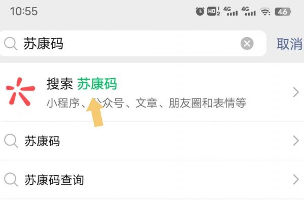 打開微信,使用微信的“搜索”功能搜索“蘇康碼”。如下圖: