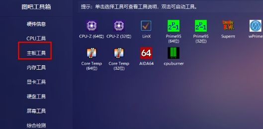 在圖吧工具箱的左側(cè)導(dǎo)航欄中,找到并點(diǎn)擊“主板工具”選項(xiàng)。