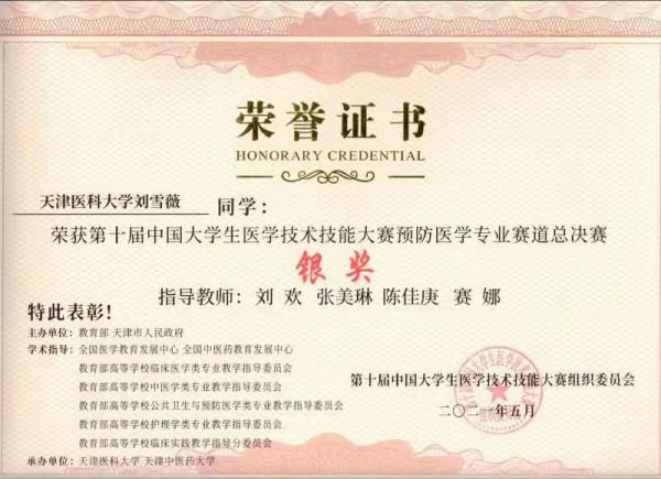 通過考核,一方面對(duì)學(xué)生公共衛(wèi)生綜合能力進(jìn)行檢驗(yàn),另一方面也為全國(guó)公共衛(wèi)生領(lǐng)域技能比賽選拔優(yōu)秀參賽選手。2018年,學(xué)院參賽選手參加首屆全國(guó)大學(xué)生公共衛(wèi)生綜合技能大賽榮獲三等獎(jiǎng)。2021年,學(xué)院參賽選手獲得第十屆中國(guó)技術(shù)技能大賽預(yù)防醫(yī)學(xué)賽道銀獎(jiǎng)的優(yōu)異成績(jī)。