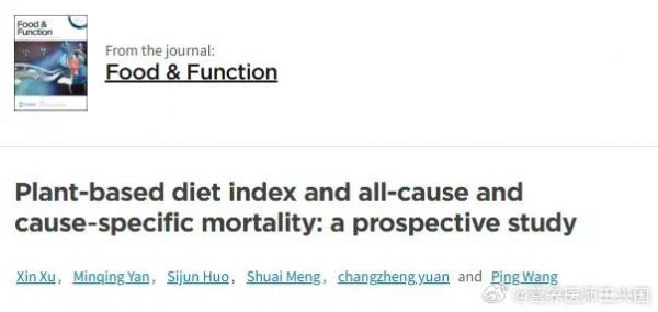 " Food & Function "期刊發(fā)表來(lái)自浙江大學(xué)的研究(下圖),堅(jiān)持健康的植物性飲食與較低的全因、心血管、癌癥死亡風(fēng)險(xiǎn)相關(guān),相反,不健康的植物性飲食與較高的死亡風(fēng)險(xiǎn)相關(guān)。