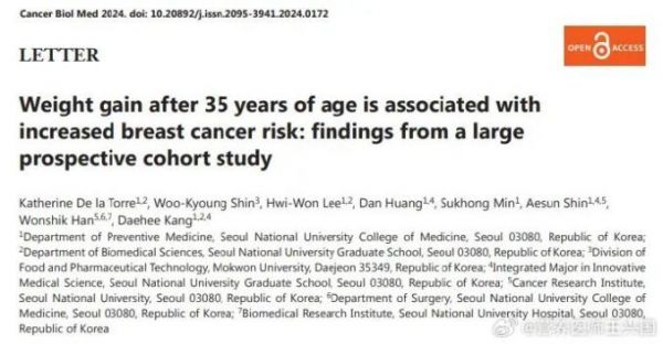 一般認(rèn)為,年輕女性肥胖是乳腺癌的保護(hù)因素(降低乳腺癌風(fēng)險(xiǎn)),但Cancer Biology & Medicine發(fā)表來(lái)自韓國(guó)首爾大學(xué)的研究(下圖),女性在35歲以后,其患乳腺癌的風(fēng)險(xiǎn)會(huì)隨著體重的增加而上升。