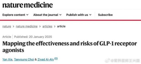 Nature Medicine 期刊發(fā)表來(lái)自圣路易斯華盛頓大學(xué)的研究(下圖)。這項(xiàng)針對(duì) 240 萬(wàn)參與者的觀察性研究顯示,使用 GLP-1RA(主要是司美格魯肽),與成癮障礙、精神障礙、癲癇發(fā)作、神經(jīng)認(rèn)知障礙(包括阿爾茨海默病和癡呆)、凝血障礙、心臟代謝障礙、感染性疾病以及幾種呼吸系統(tǒng)疾病等 42 種健康風(fēng)險(xiǎn)降低有關(guān);與胃腸道疾病、低血壓、暈厥、關(guān)節(jié)炎、腎結(jié)石、間質(zhì)性腎炎以及藥物性胰腺炎等 19 種健康風(fēng)險(xiǎn)增加有關(guān)。