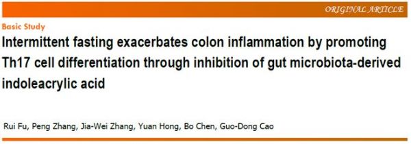 近日,安徽醫(yī)科大學的研究人員在《世界胃腸病學雜志》上發(fā)表了一篇題為" Intermittent fasting exacerbates colon inflammation by promoting Th17 cell differentiation through inhibition of gut microbiota-derived indoleacrylic acid "的研究論文。