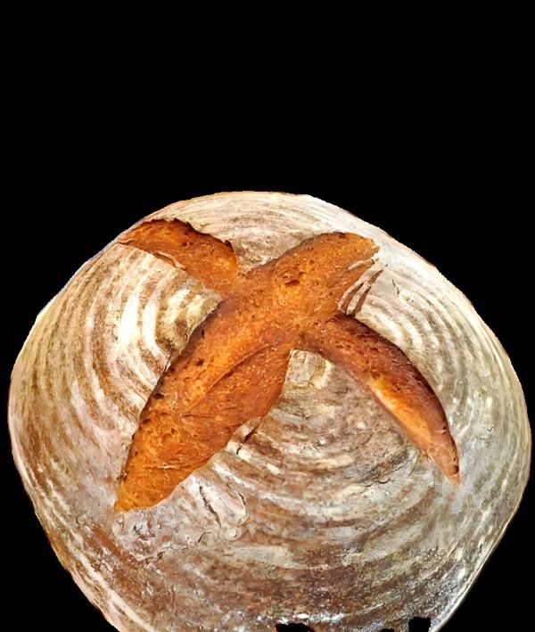 待面團醒發(fā)至約1.5倍體積后,根據個人喜好,在其表面劃上幾刀。接著,篩入適量面粉,增添一些風味。然后,將面團放入空氣炸鍋,以180度烤制25分鐘。時間到后,取出翻面,再烤15分鐘即可。