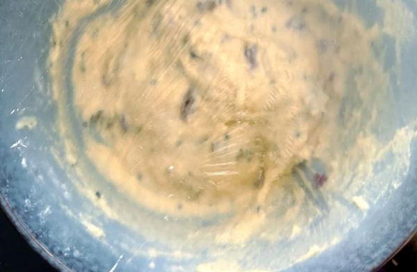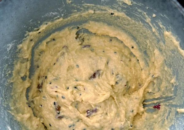 首先,將所有食材混合攪拌均勻,直到沒有干粉為止。