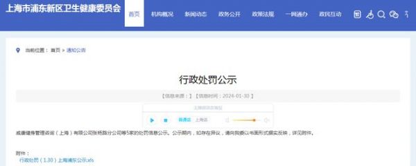 上海市浦東新區(qū)衛(wèi)生健康委員會(huì)公示行政處罰信息(1.30)