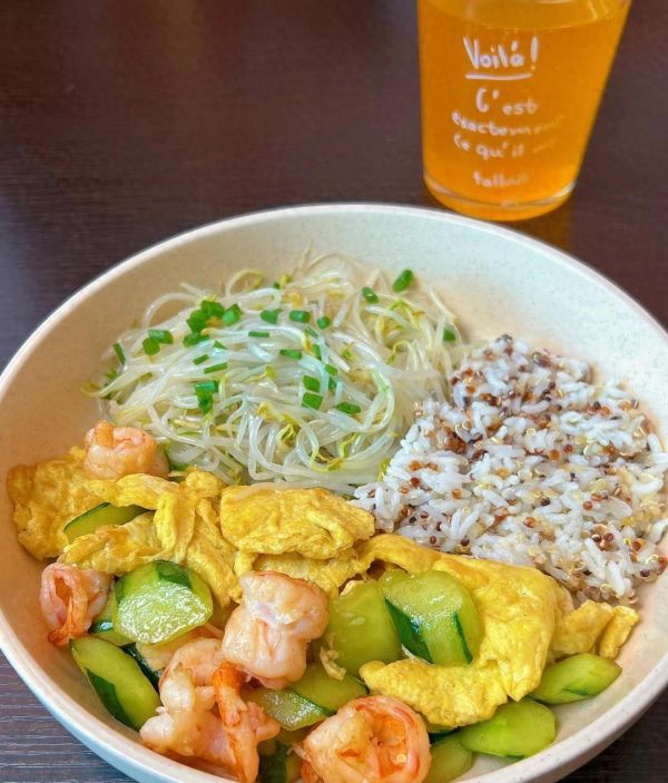 ? 第一套便當(dāng):蝦仁黃瓜雞蛋配藜麥飯