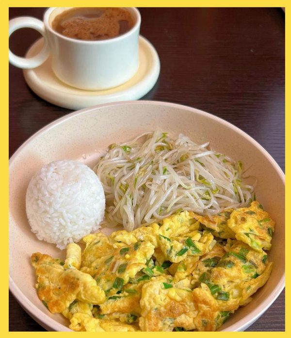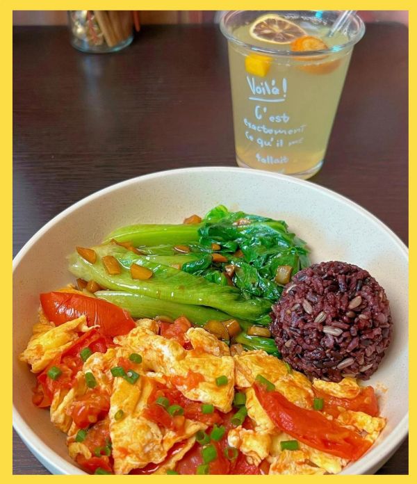 第五套便當(dāng)則包含番茄炒蛋、蠔油生菜和糙米飯。番茄去皮切塊后,先出汁再與雞蛋一同回鍋炒制,這樣能更好地釋放番茄紅素,使口味酸甜開胃。生菜焯水后,淋上少許蠔油汁,保持其脆爽口感。糙米飯相較于白米,保留了更多的麩皮和胚芽,纖維含量更高,吃起來更加耐餓。這一套便當(dāng)在暑天時尤其受歡迎,既解膩又令人滿足,不用擔(dān)心下午會餓得抓零食。
