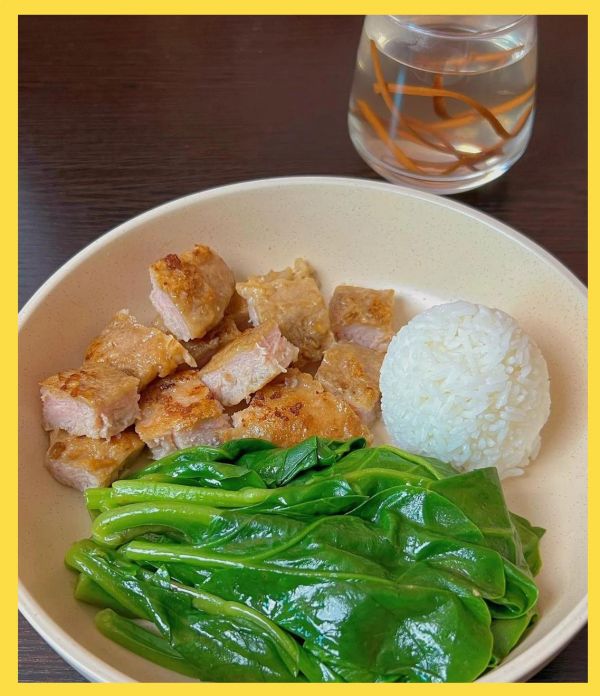 第六套便當(dāng)?shù)拇钆錇?strong>煎雞胸肉、木耳菜和白米飯。雞胸肉先經(jīng)過刀背拍松,再腌制入味,煎制時用中小火慢慢煎至兩面金黃,外皮微脆而內(nèi)里保持鮮嫩。這樣的搭配非常適合運動后補充蛋白質(zhì),同時也適合那些對卡路里敏感但需要迅速恢復(fù)體力的人群。我有一位健身的朋友阿強,他喜歡將雞胸肉替換為香煎三文魚,這樣的油脂來源變化也能讓飲食計劃更加靈活且易于堅持,這種靈活性在飲食中非常重要。
