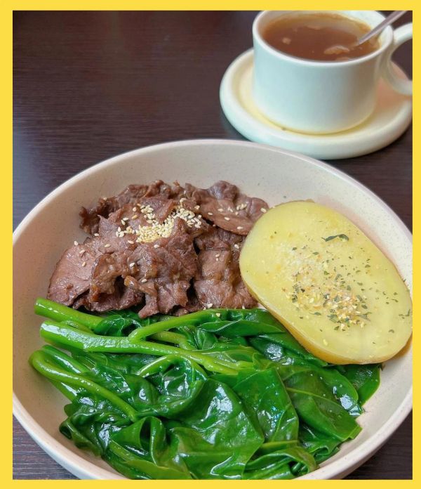 ? 第三套便當(dāng):木耳菜瘦牛片與蒸土豆