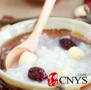 材料:糯米50克、蓮子50克、無核金絲棗50克、銀耳5克、冰糖50克、清水1.5升、大米50克。