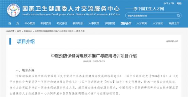 國家衛(wèi)生健康委人才交流服務(wù)中心:中醫(yī)預(yù)防保健調(diào)理技術(shù)推廣與應(yīng)用培訓(xùn)項(xiàng)目介紹及報考說明