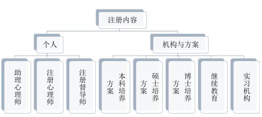 注冊系統(tǒng)最重要的工作是對從事心理治療與咨詢的專業(yè)人員進(jìn)行注冊登記;對臨床與咨詢心理學(xué)專業(yè)培訓(xùn)方案及繼續(xù)教育項目、實習(xí)機構(gòu)進(jìn)行注冊登記。具體注冊登記項目見圖1.2。